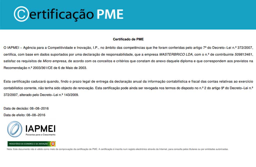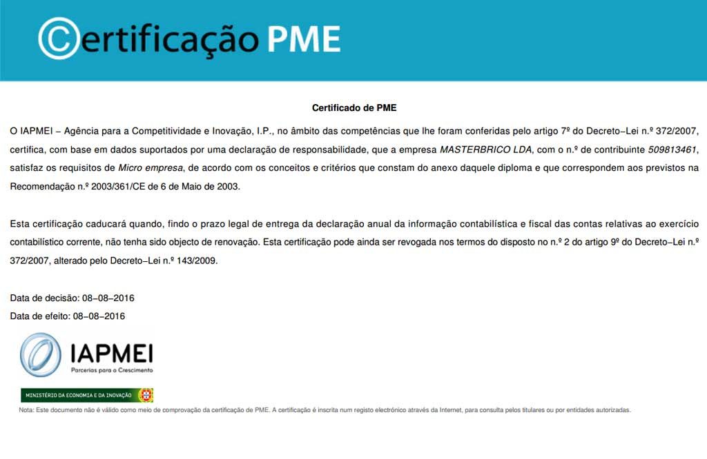 Masterbrico es una empresa certificada.