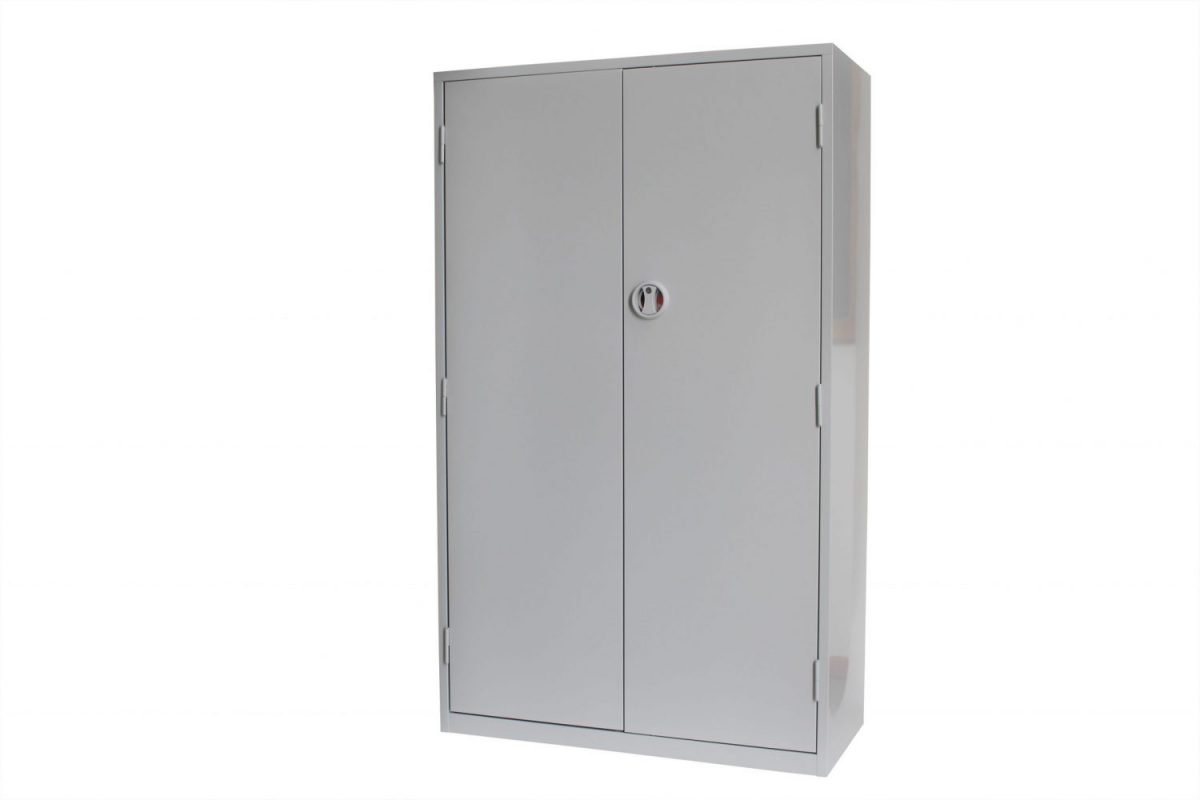Armário alto com 2 portas de bater, para guardar e organizar todo o tipo de produtos. Promovido de fechadura com 2 chaves, pode com segurança ter guardados os seus pertences. Tem no seu interior 3 prateleiras com regulação. 4 Pés reguláveis para nivelação no pavimento. Cor standard cinzento. Outras cores disponíveis sob pedido.