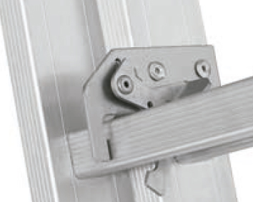Sistema de engate com auto-bloqueio e com tacos de borracha antideslizantes. Vem equipada com base estabilizadora para maior segurança. Fabricada segundo a EN131 com 5 anos de garantia contra defeitos de fabrico. Escadas disponível com altura de trabalho de 2.65 a 6.57 metros.